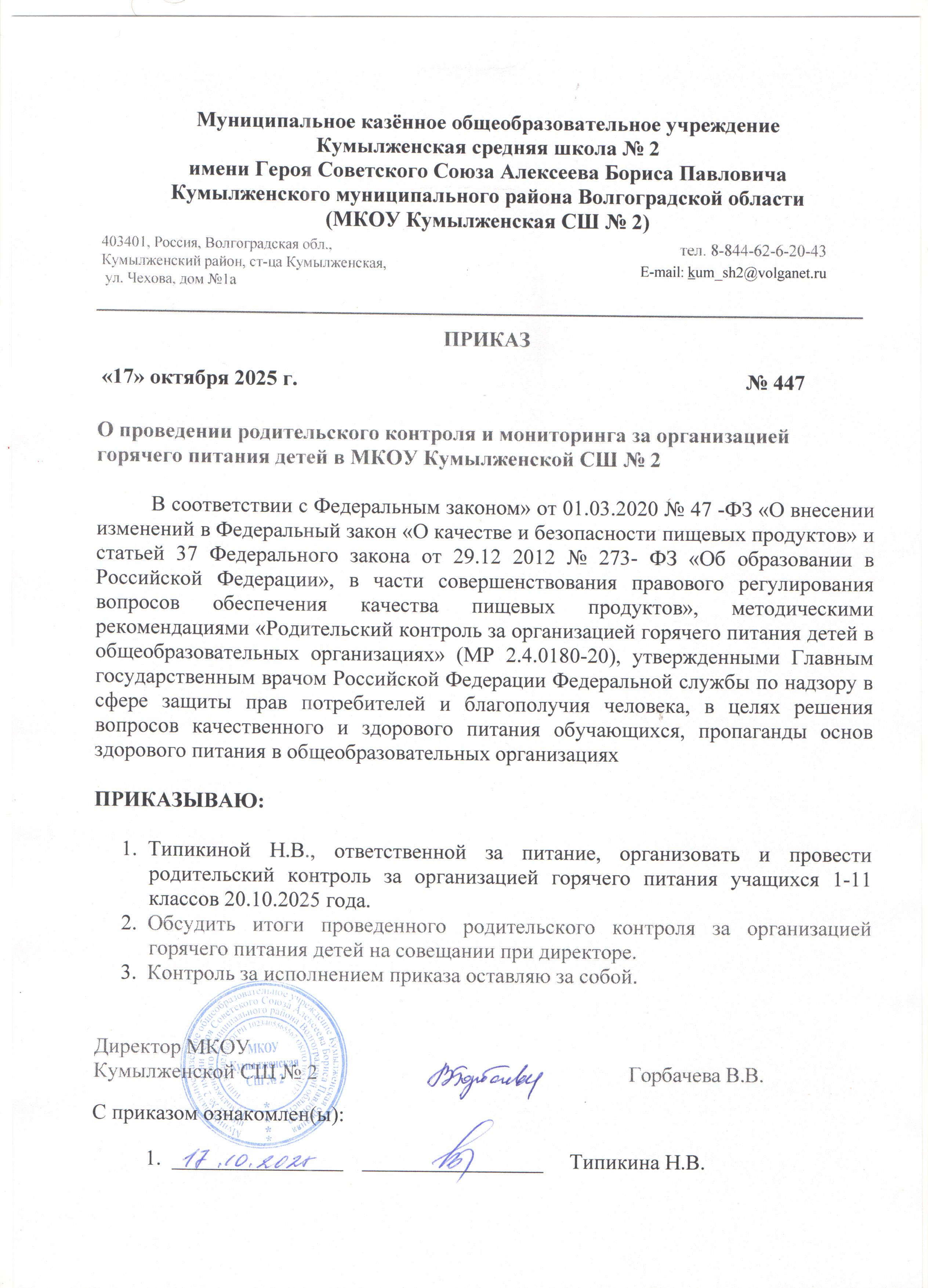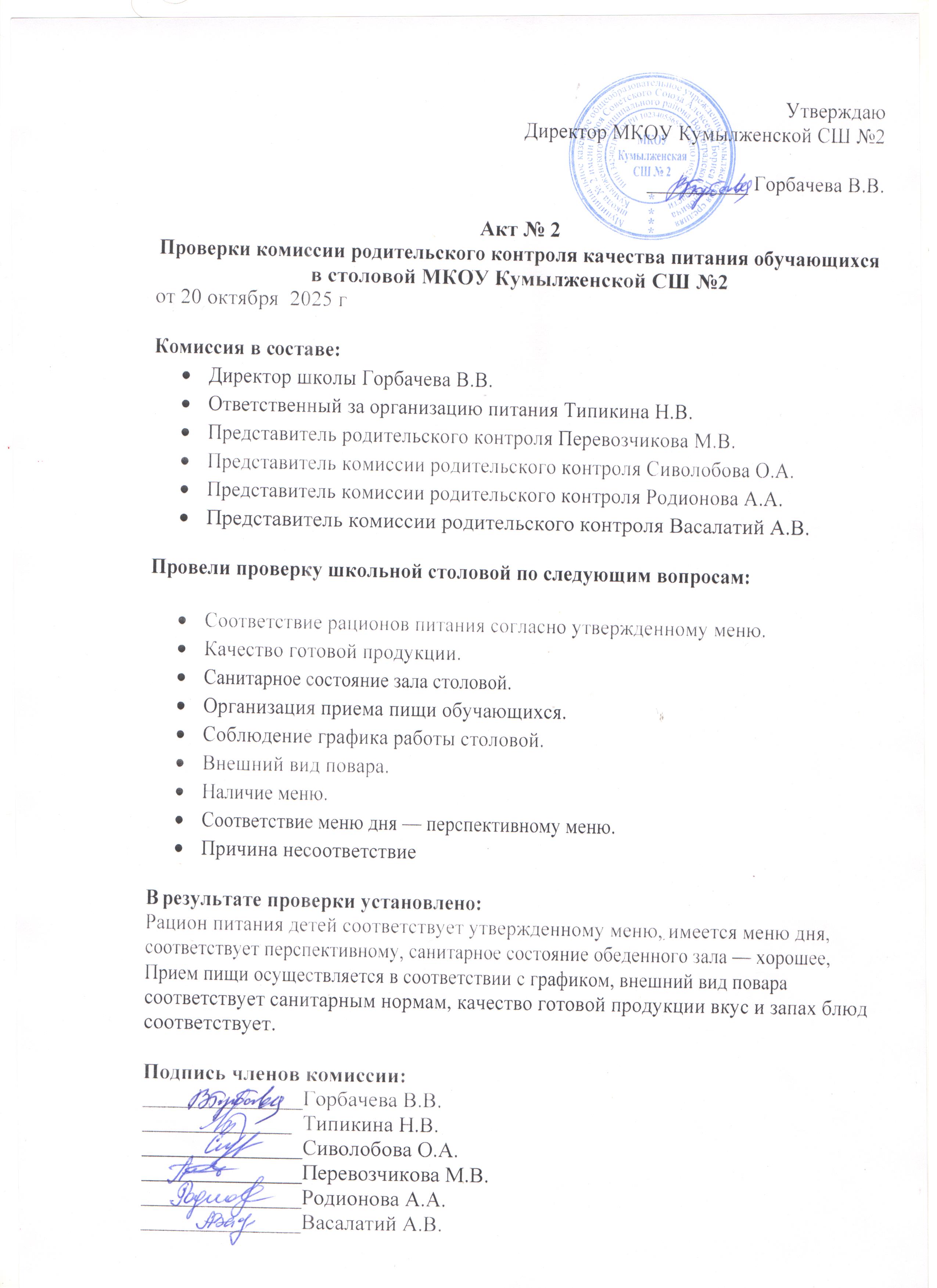 Аналитическая справка по итогам анкетирования учащихся и их родителей.pdf Акт №1 Проверки комиссии родительского контроля качества питания 24.09.2025.pdf Акт №2 Проверки комиссии родительского контроля качества питания 20.10.2025 |